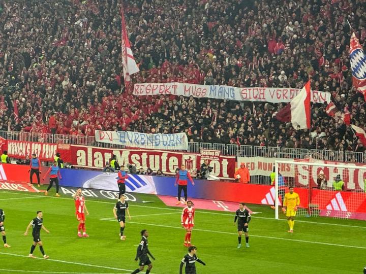不服来德甲 到安联 干一把不得了 横幅写的没错 尊重是靠自己争来的