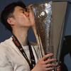 11-24 03:51加布晒反穿埃泽球衣手拿全场MVP奖杯照片,并标记了里沙利松