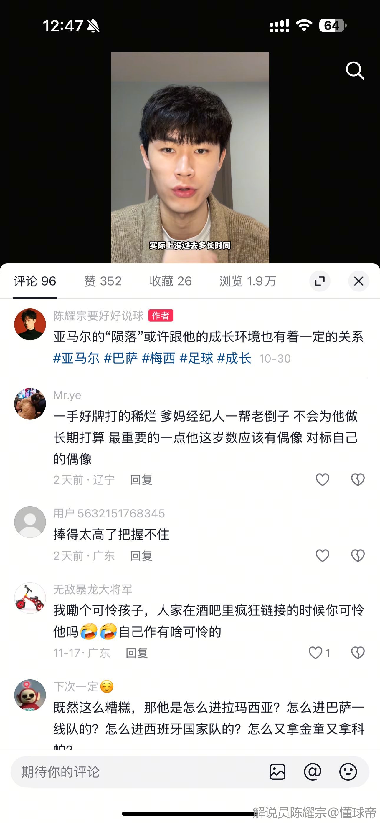 很早我就在其他平台上发表过这样的观点,亚马尔现在的情况和他糟糕的成长环境也有一定的关系,当然自己的问题肯定更大。经纪人、原生家庭,俱乐部、队友,能给他的呵护和关爱太少太少…