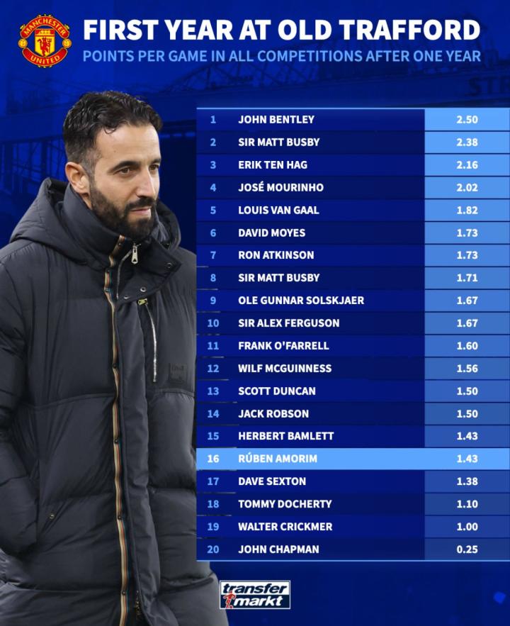 扫描下载懂球帝首页>动态> 懂球号> 曼联主教练接手第一年的场均得分:阿莫林并不是最差劲的!