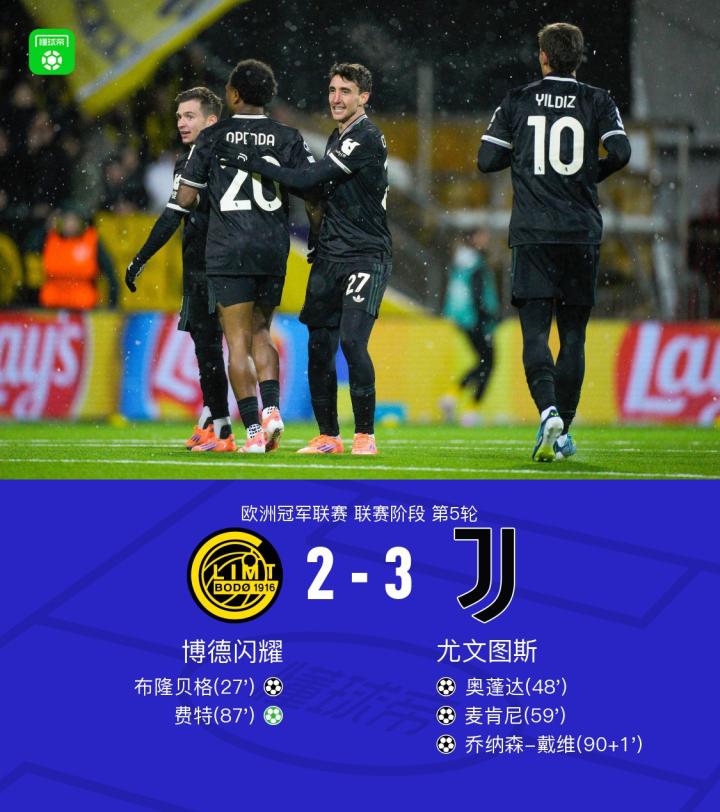 11-27 06:12欧冠第一阶段第5轮:博德闪耀2-3尤文图斯,戴维绝杀