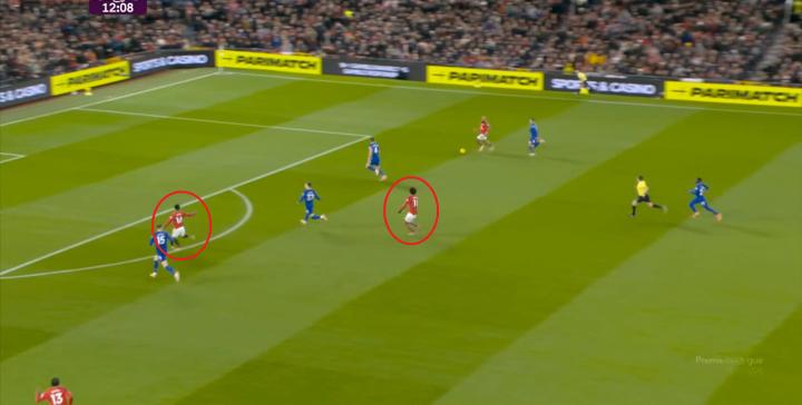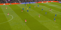 而且在红牌后的第一次进攻当中,曼联除了利用到了中场身侧的空间之外,卢克-肖也来到了前场: