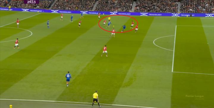 就在第二次带动球队向前之后,埃弗顿得以留在了前场,来到了又一个转折点,也就是曼联的丢球时刻。