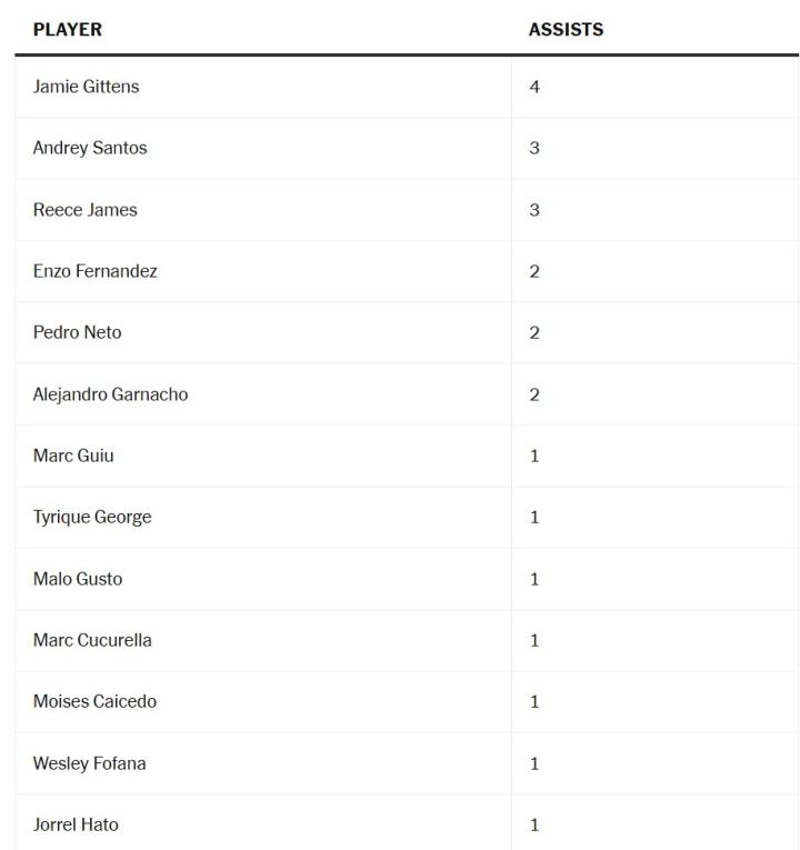 在另一条边路,夏窗引进的亚历杭德罗-加纳乔和比诺埃-吉滕斯在这13场比赛中合计参与了9个进球。甚至是一些顺位较低的球员,如安德雷-桑托斯和泰里克-乔治,也各自参与了4球。