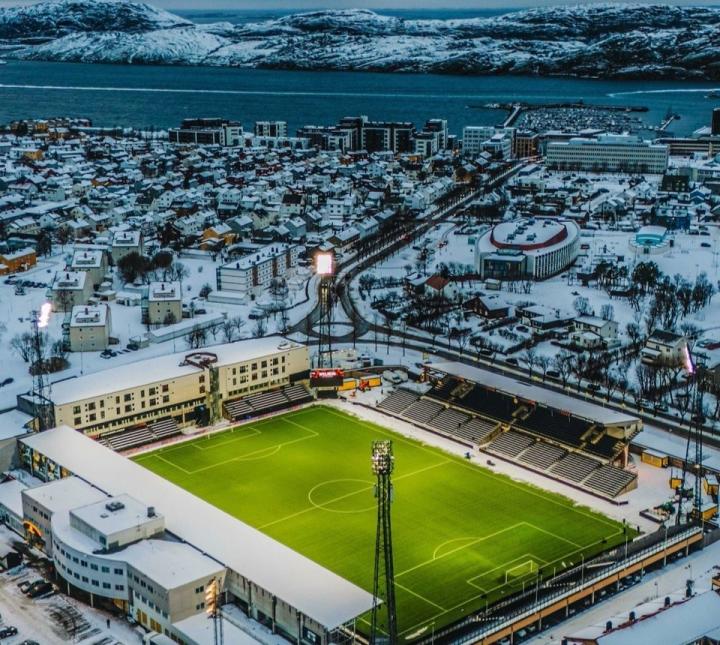 这雪有点大,欧冠赛前一名挪威记者在博德闪耀的球场边线处滑雪