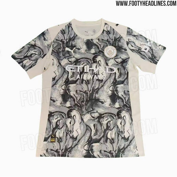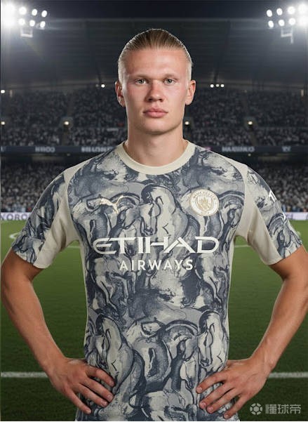 扫描下载懂球帝首页>动态> 曼城马年球衣谍照:米白色底+复杂马头图案,灵感源自水墨画