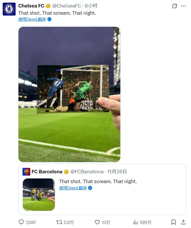 扫描下载懂球帝首页>动态> 巴萨赛前发小白当年绝杀照,切尔西赛后用埃斯特旺破门照回应