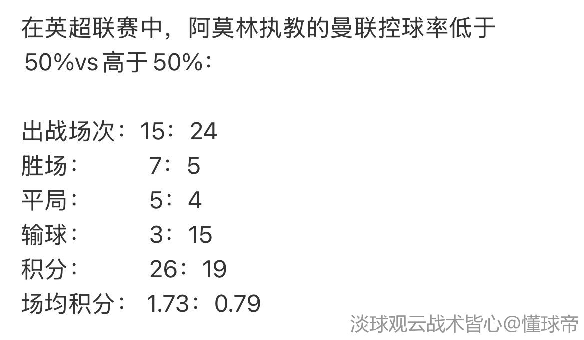 故意演的肯定看了这个数据,知道阿莫林不擅长传控是个防反教练