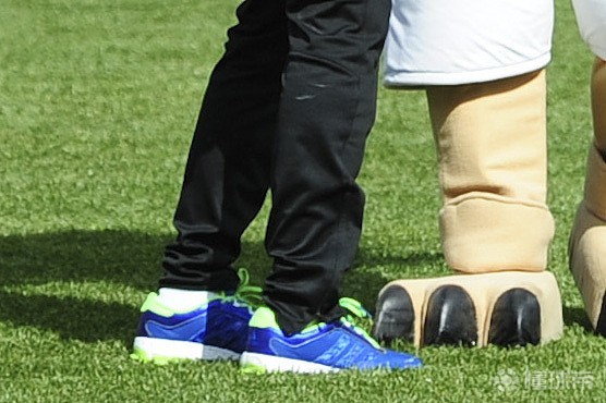 不知道是不是因为这双鞋太好穿了,李铁在后面对阵石家庄永昌的比赛中又穿着这双阿迪的运动鞋在场边指挥。但是这次他用记号笔把三道杠涂上了颜色。