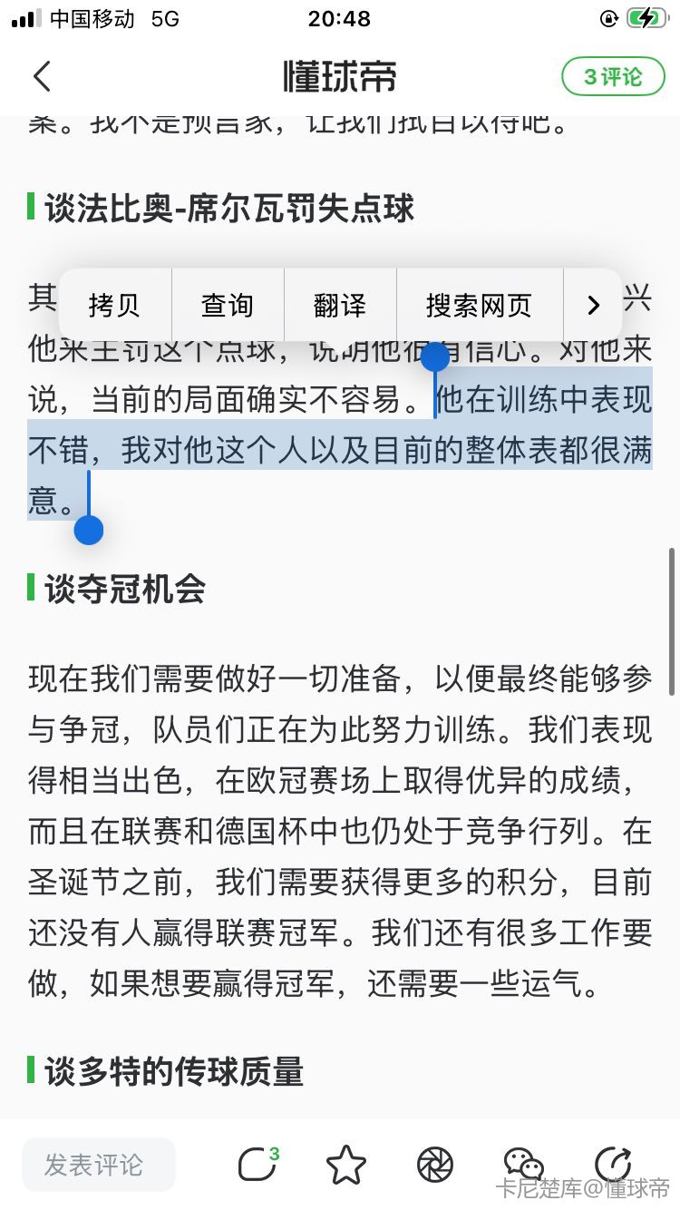 其他球员主罚点球也可能会罚失,但我很高兴他来主罚这个点球,说明他很有信心。对他来说,当前的局面确实不容易。他在训练中表现不错,我对他这个人以及目前的整体表都很满意。