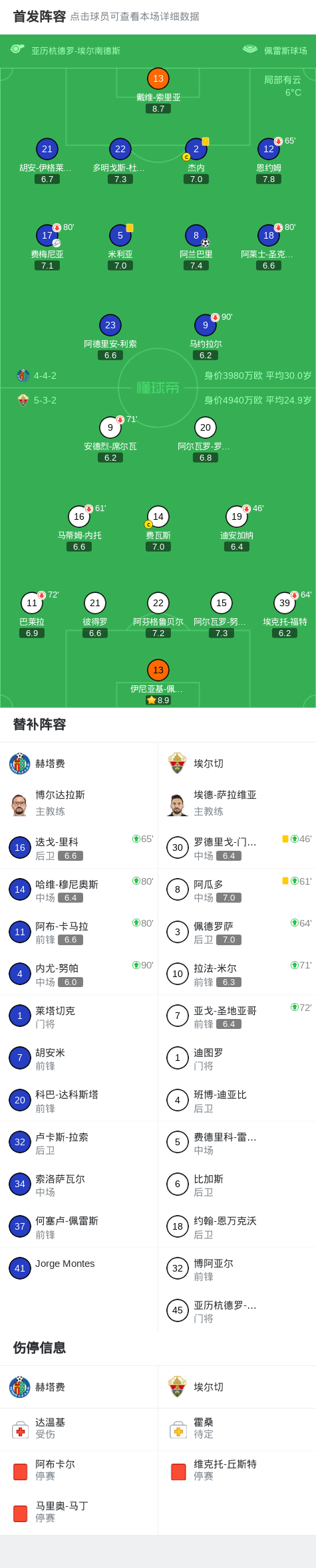 11-29 04:48赫塔费vs埃尔切:马约拉尔、戴维-索里亚首发,安德烈-席尔瓦、伊尼亚基-佩尼亚出战
