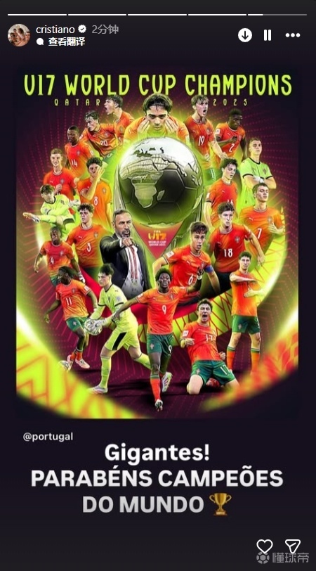扫描下载懂球帝首页>动态> 懂球号> 难道说?在葡萄牙队首次夺得U17世界杯冠军后,C...