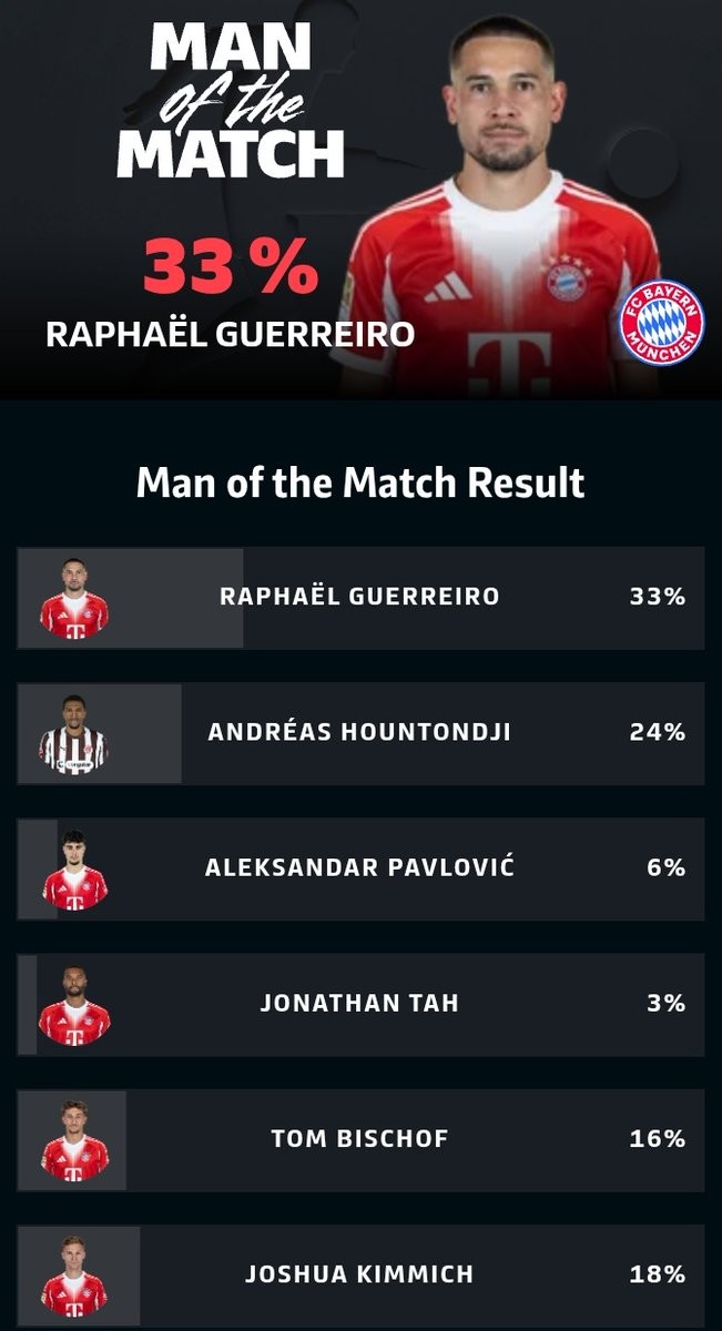 扫描下载懂球帝首页>动态> 打进一球,格雷罗当选拜仁vs圣保利全场最佳球员