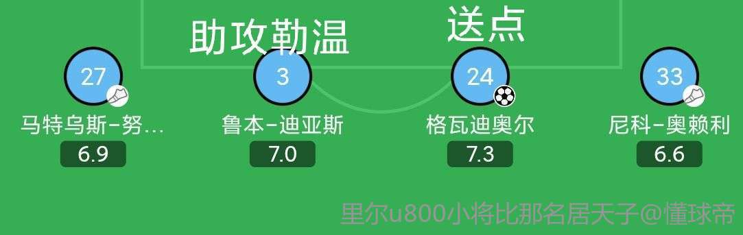 努内斯,格瓦迪奥尔,各自送一个。打算开喷,转念一想一个助攻,一个进球!