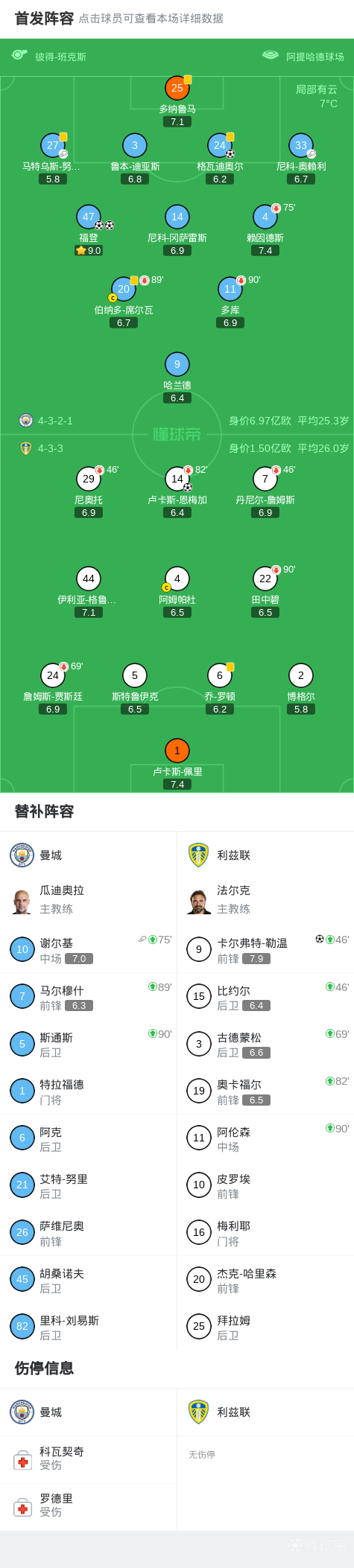 11-30 01:36梅开二度,福登当选曼城vs利兹联全场最佳球员