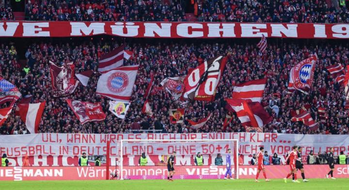 扫描下载懂球帝首页>动态> 赫内斯支持废除50+1,拜仁球迷拉横幅反对:这是不可想象的