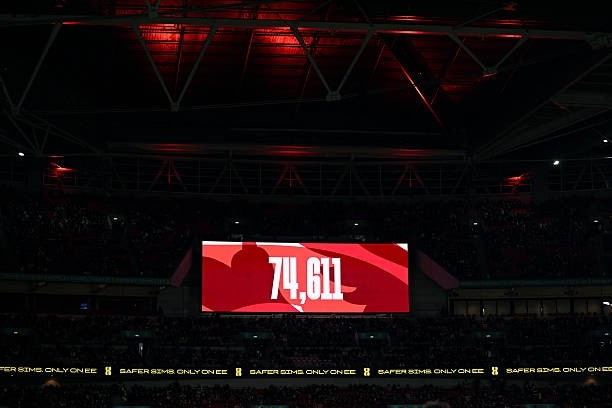 本场比赛的举办地是位于伦敦的英格兰足球胜地温布利球场,而即使是这样一场女足的友谊赛,也同样吸引了大量的观众来到现场观战。