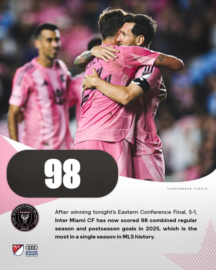 扫描下载懂球帝首页>动态> 迈阿密国际本赛季常规赛+季后赛打进98球,创美职联历史纪录