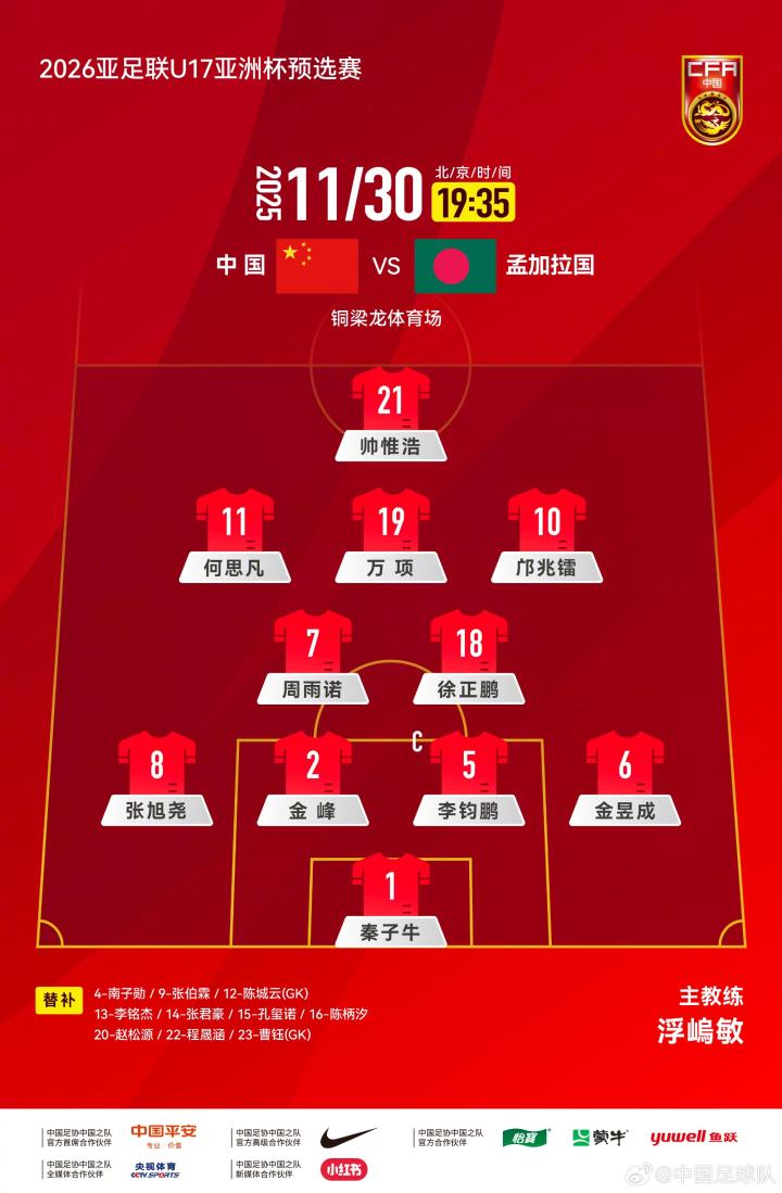 11-28 21:29官方:CCTV5+转播U17亚洲杯预选赛国少vs孟加拉国U17