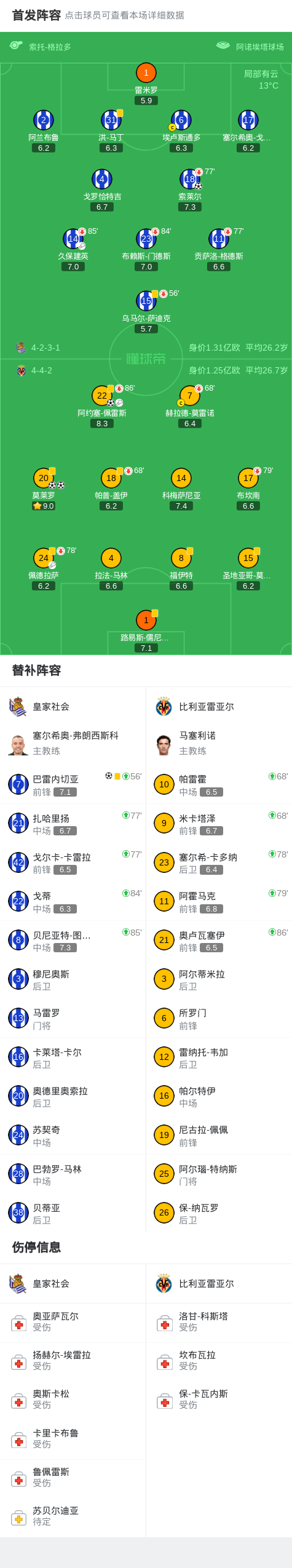 扫描下载懂球帝首页>动态> 比利亚雷亚尔3-2皇家社会,莫莱罗梅开二度,阿约塞-佩雷斯建功