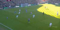 在这样截然不同的支点效果之下,两支球队的进攻自然也呈现出了完全不同的样子,比如在第12分钟,水晶宫就打出了一次非常流畅和轻松的转移进攻,带出了左侧的传中: