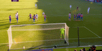 而在这次定位球主罚的过程中,曼联很好地利用了裁判哨响之后,水晶宫球员准备不及的瑕疵,尤其是在球门后的这一视角,可以清晰地看到门将亨德森刚刚布置好人墙回位,便立刻开始扑救的过程: