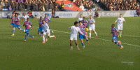 这两个非常幸运的定位球进球,让水晶宫在主场立刻陷入了混乱,此前一直通过快攻和反击来享受充裕进攻空间的他们,也不得不在这时面对密集防守的难题: