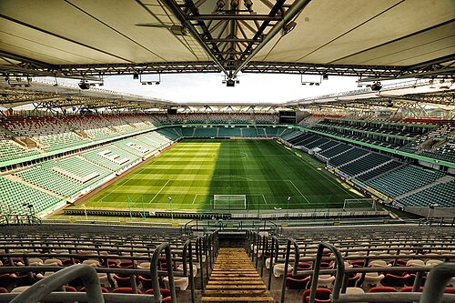 该体育场于2008年至2011年间分两个阶段进行了全面重建。主建筑立面仅保留了原建筑的一小部分(另一部分则进行了精确重建)。体育场可容纳31,103名观众,是波兰足球甲级联赛(Ekstraklasa )第五大、全国第七大足球场。体育场配备了加热草坪、训练场、地下停车场、体育酒吧、俱乐部博物馆及其他设施。