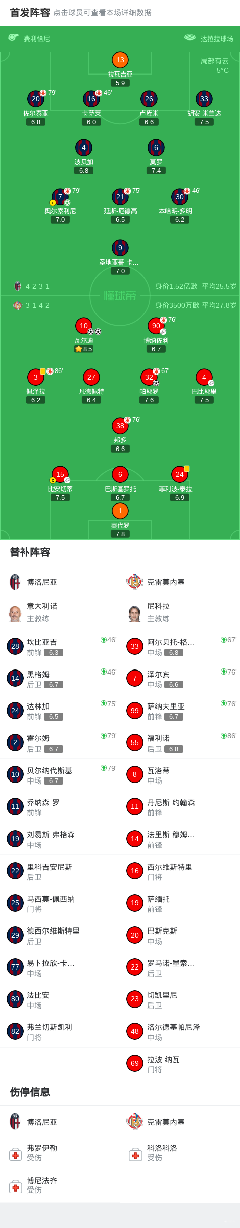 懂球帝首页>动态> 克雷莫内塞3-1博洛尼亚,瓦尔迪双响,帕耶罗破门