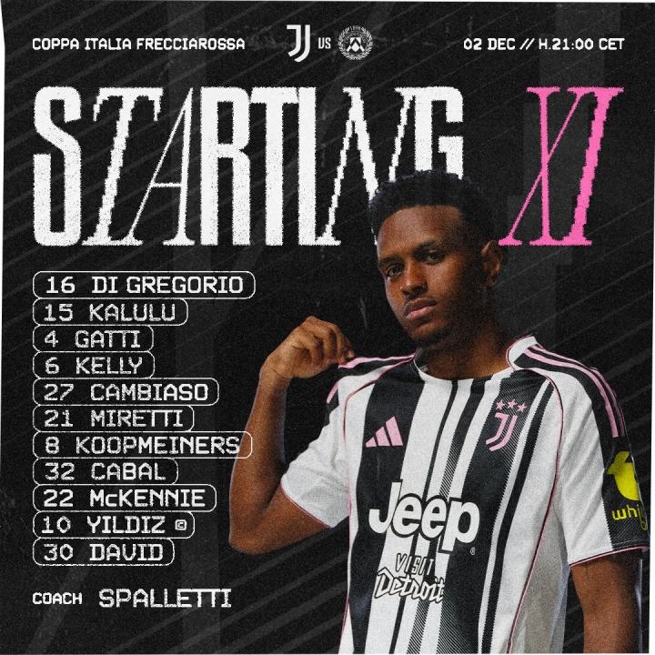 扫描下载懂球帝首页>动态> 尤文vs乌迪内斯:伊尔迪兹、乔纳森-戴维首发,麦肯尼出战