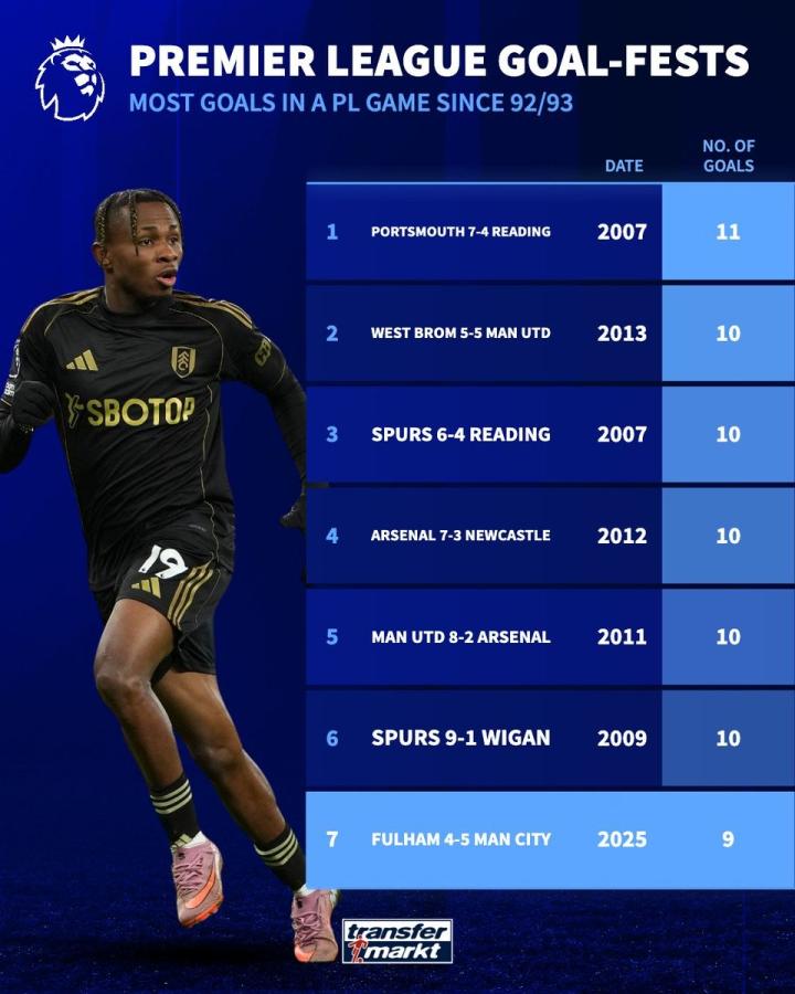 12-03 06:02曼城6次参与单场进球9+的英超比赛,仅次于曼联的7次
