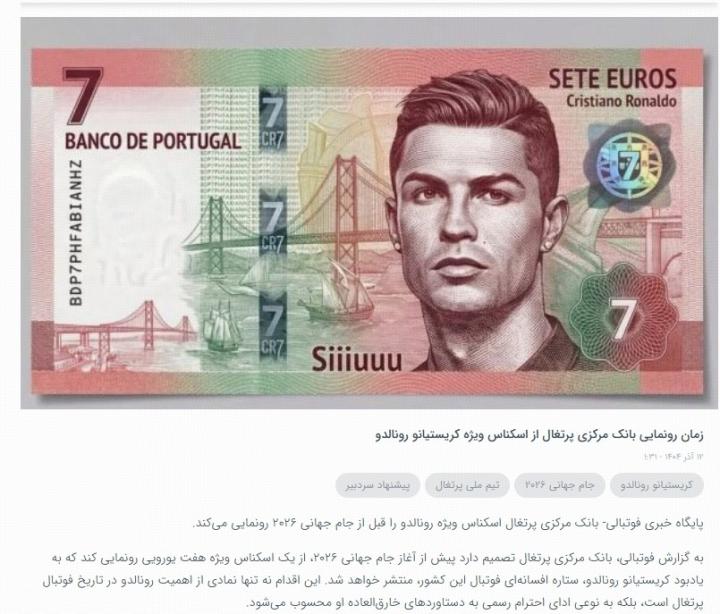 扫描下载懂球帝首页>动态> 网传葡萄牙央行发行C罗纪念纸币应为假:未有权威葡媒报道,年初曾有辟谣