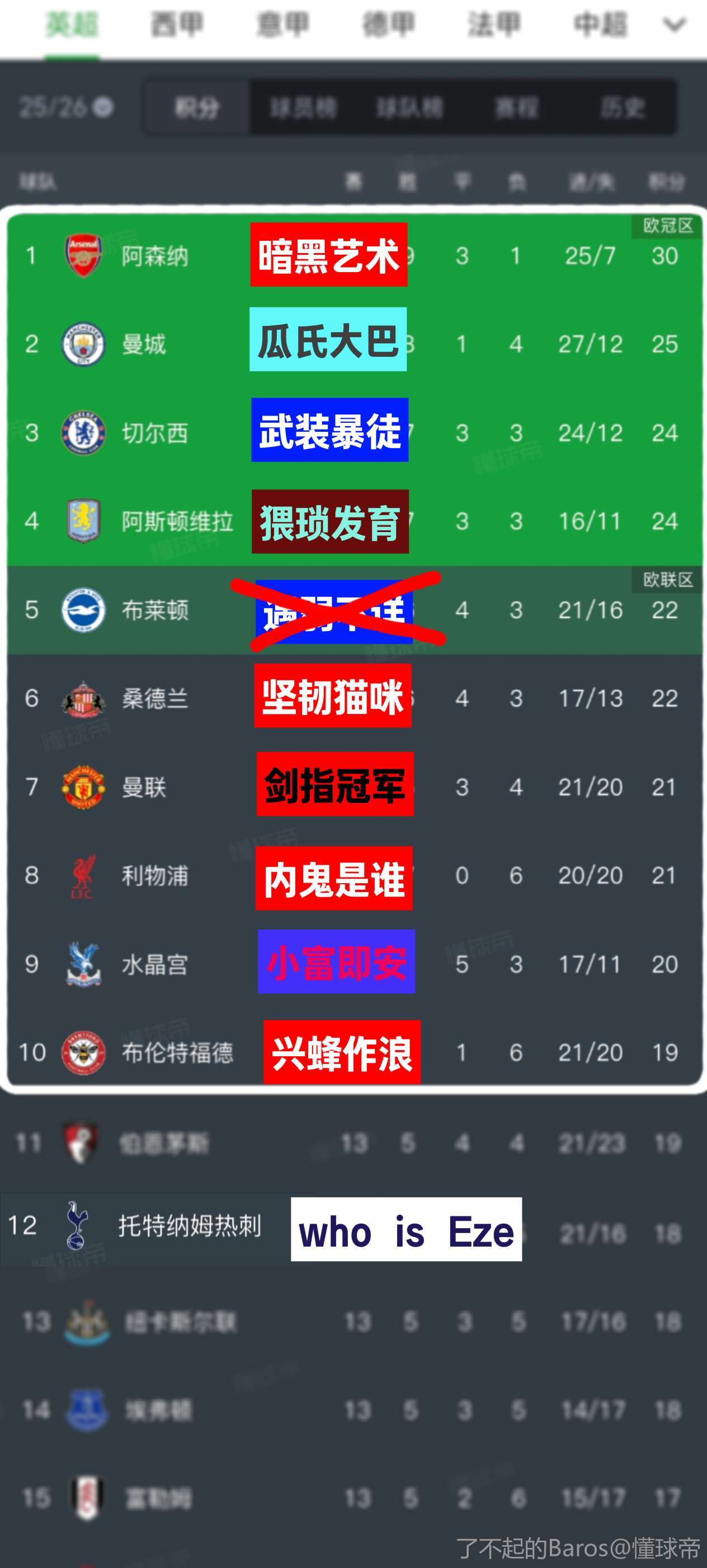 我一数六个曼城,然后看下剩下四个是谁,结果还有个曼城