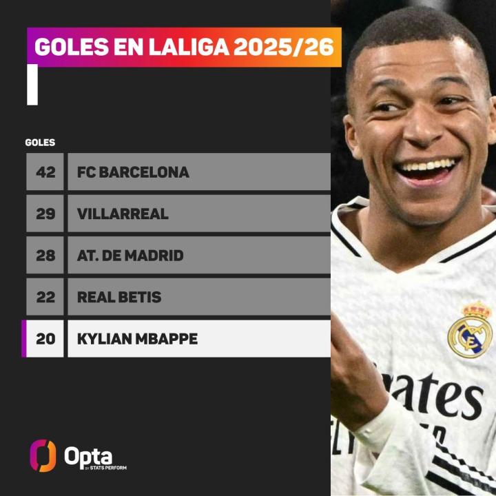 扫描下载懂球帝首页>动态> 姆巴佩本赛季西甲已参与20球,超过15支球队的进球数