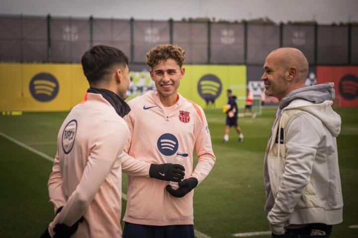 扫描下载懂球帝首页>动态> 伊涅斯塔造访巴萨训练基地,与佩德里、亚马尔等人合影