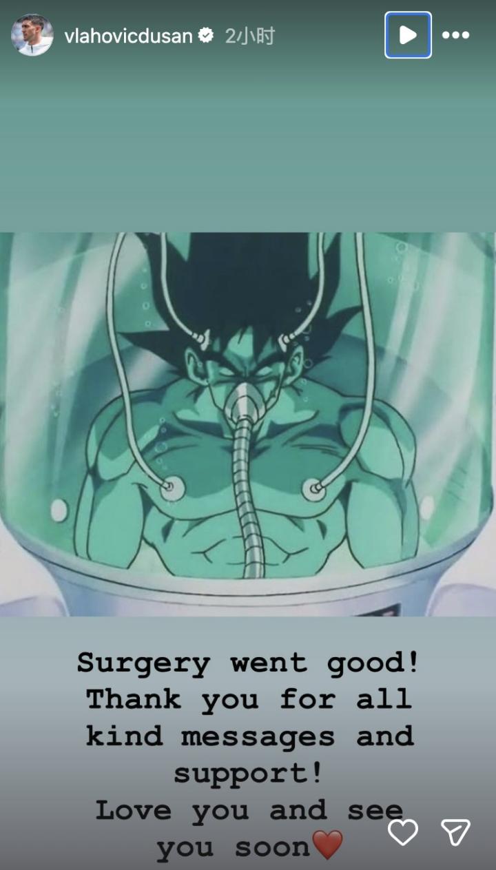 扫描下载懂球帝首页>动态> 弗拉霍维奇晒龙珠悟空恢复照:手术很顺利,感谢大家