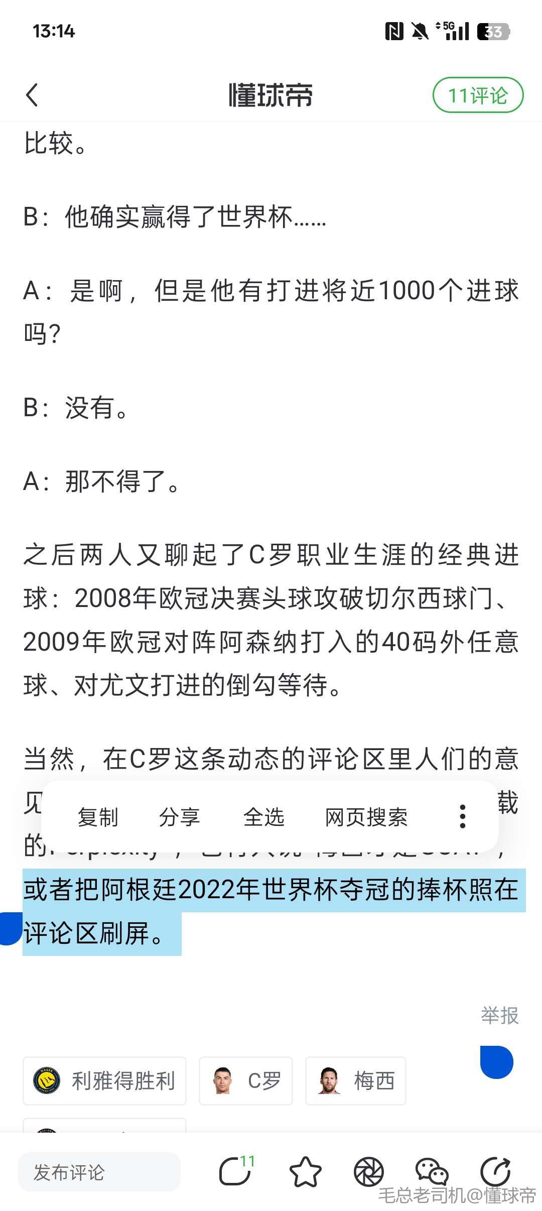 评论里非有些说没提梅西名字,那就随便和其他拿世界杯的人比较行了吧。自愿向下比较呗。
