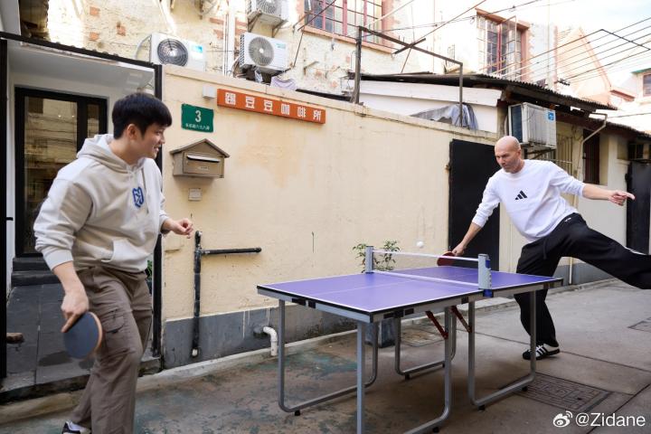 齐达内晒中国行瞬间:和樊振东切磋乒乓球、逛古迹等