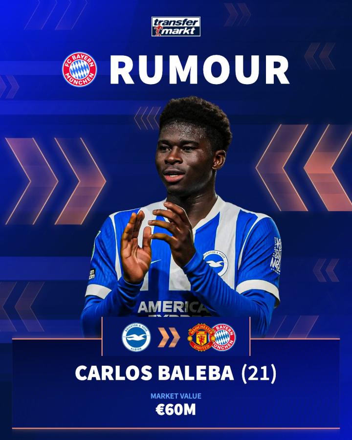扫描下载懂球帝首页>动态> 懂球号> 拜仁和曼联有意引进布莱顿中场巴莱巴