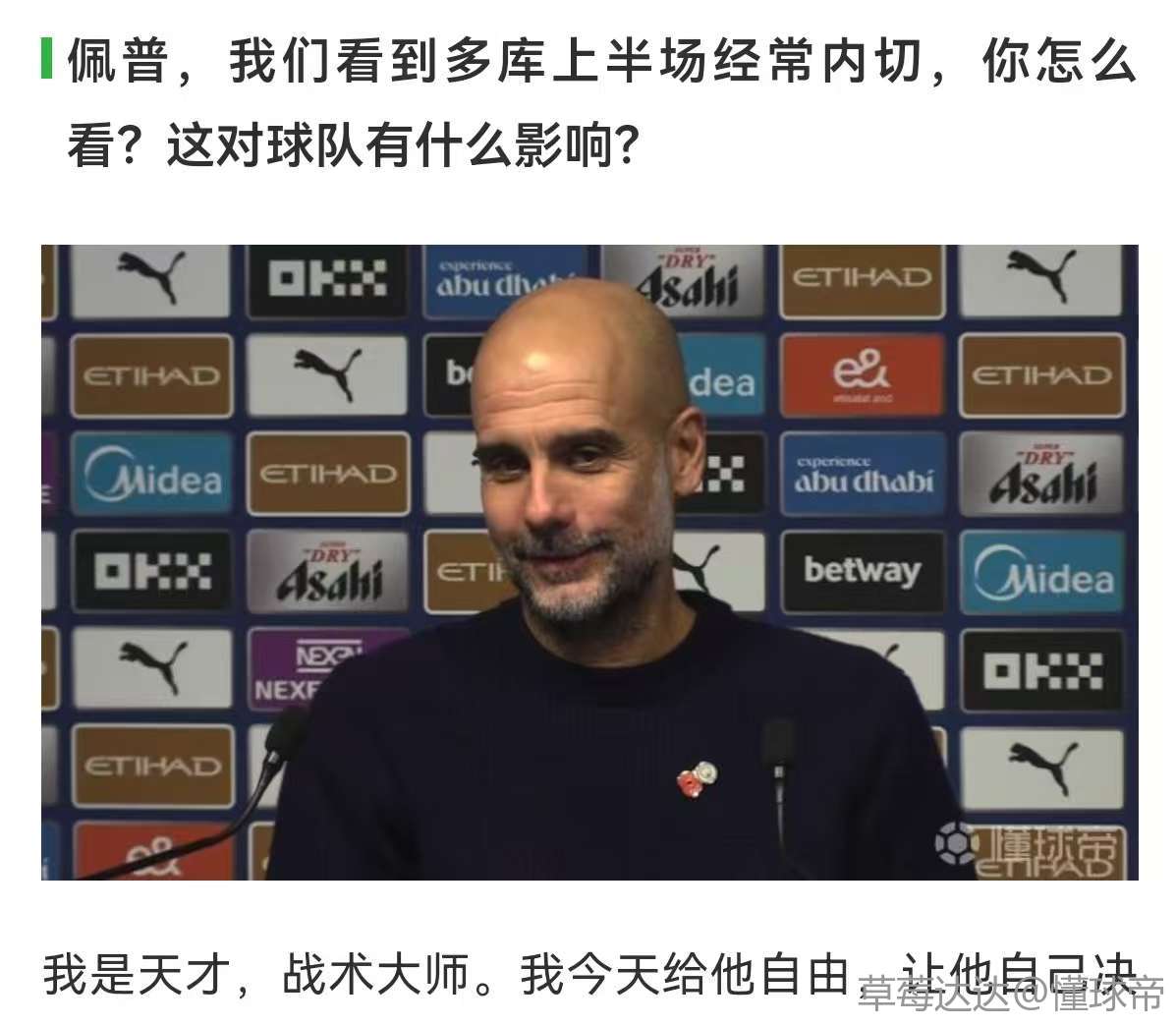 我只能说,以我谦逊的观点,他们配得上现在的位置。当你面对一支升班马球队,踢三、四、五场,也许会出现状态上的惯性。但在英超踢了14轮,对手都是这样的级别……每一场比赛,每支球队,包括我们曼城,都必须每场都面对困难才能拿到结果。他们能处在这个位置,就是配得上。如果你问我他们做了什么,有四五六个关键要点——他们每一项都做得很好,否则他们绝不会在这联赛里达到这种高度。不可能。所以对我们是很好的挑战。