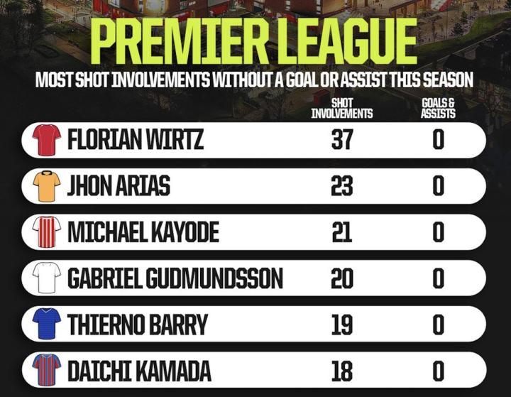 扫描下载懂球帝首页>动态> 维尔茨本赛季英超参与37次射门,是0球0助的球员中最多的