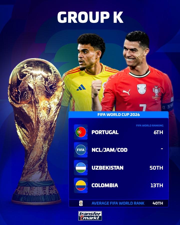 葡萄牙这组主要是有一个名额没确认,新喀里多尼亚排名又很低,大概率应该是民主刚果晋级,这样的话 这组平均排名也不低!另外,世界排名也就是个参考,并不能决定比赛结果,还得看比赛中的表现!这也是足球吸引人的一点,比赛没结束,就不要轻易下结论