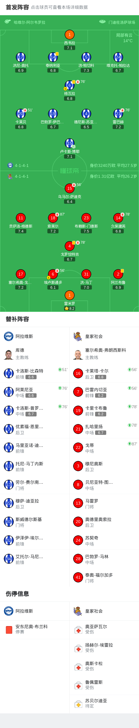 12-06 22:59阿拉维斯vs皇家社会:德尼斯-苏亚雷斯、洪尼-奥托首发,久保建英、贡萨洛-格德斯出战