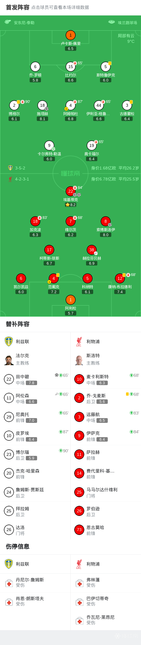 扫描下载懂球帝首页>动态> 剑南春|利物浦客场3-3利兹联,田中碧补时绝平,埃基蒂克双响