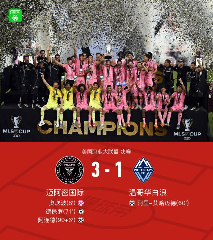 扫描下载懂球帝首页>动态> 迈阿密国际夺得美职联总冠军!梅西助攻双响+夺个人第47冠