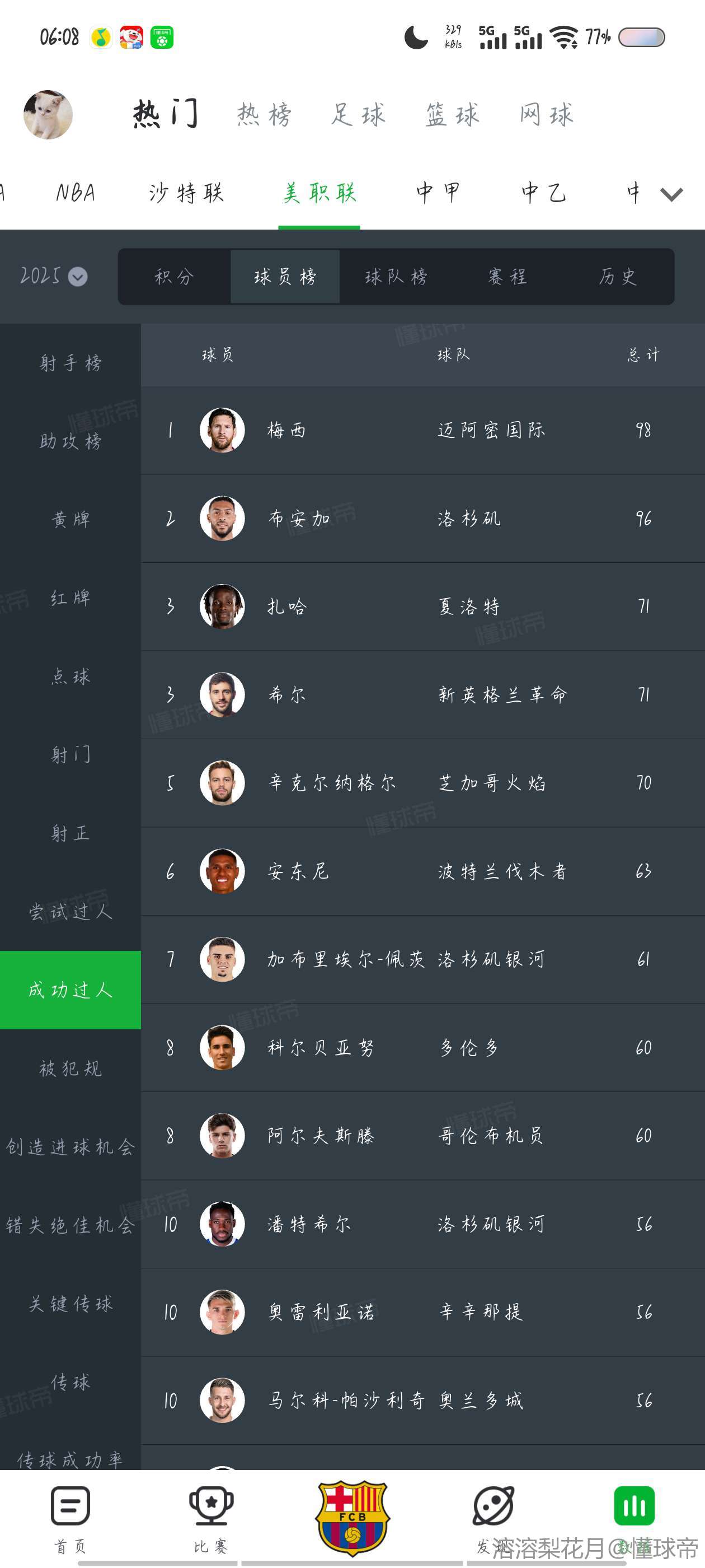 如今再把之前倒数第一的迈阿密带到美职联总冠军,个人数据进球35+助攻21,完全是降维打击,38岁依然金靴+助攻王+过人王,强到发指。