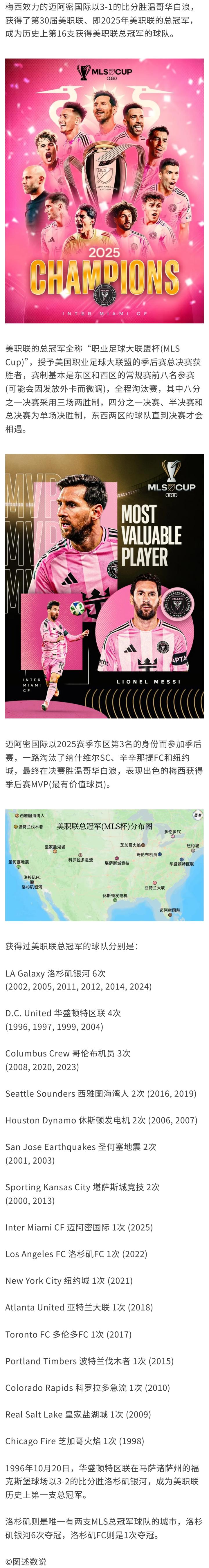 扫描下载懂球帝首页>动态> 懂球号> 迈阿密国际获得第30届美职联总冠军,是第十六支夺冠球队