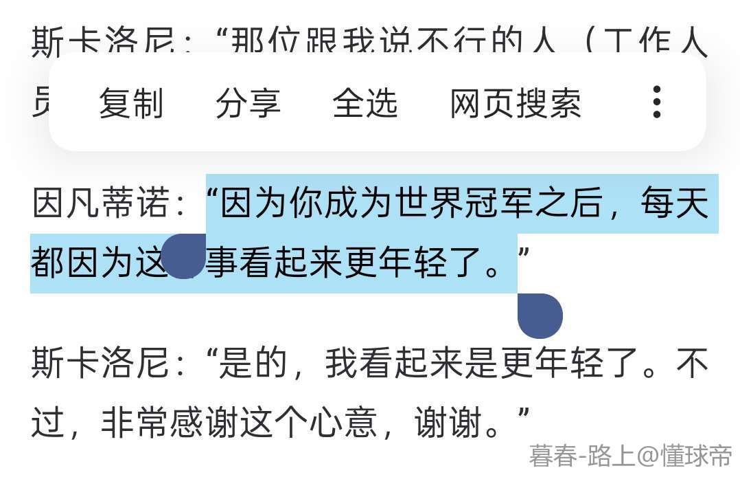 “因为你成为世界冠军之后,每天都因为这件事看起来更年轻了。”情商很高