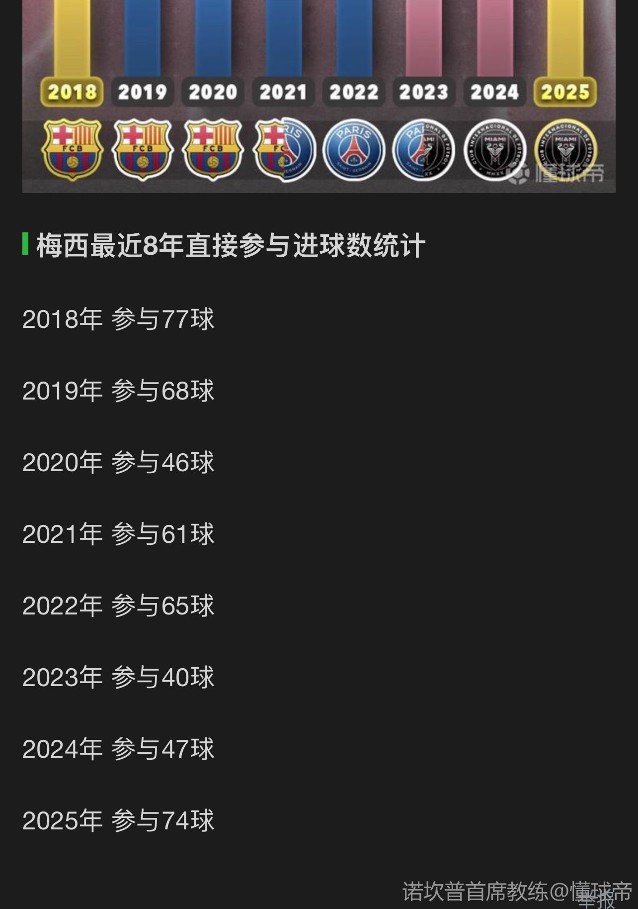 扫描下载懂球帝首页>动态> 梅西2025年直接参与74球,为个人近7年最多
