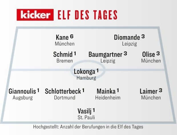 扫描下载懂球帝首页>动态> 踢球者评德甲本轮最佳阵容:凯恩、奥利塞、莱默尔等人在列
